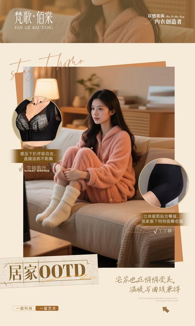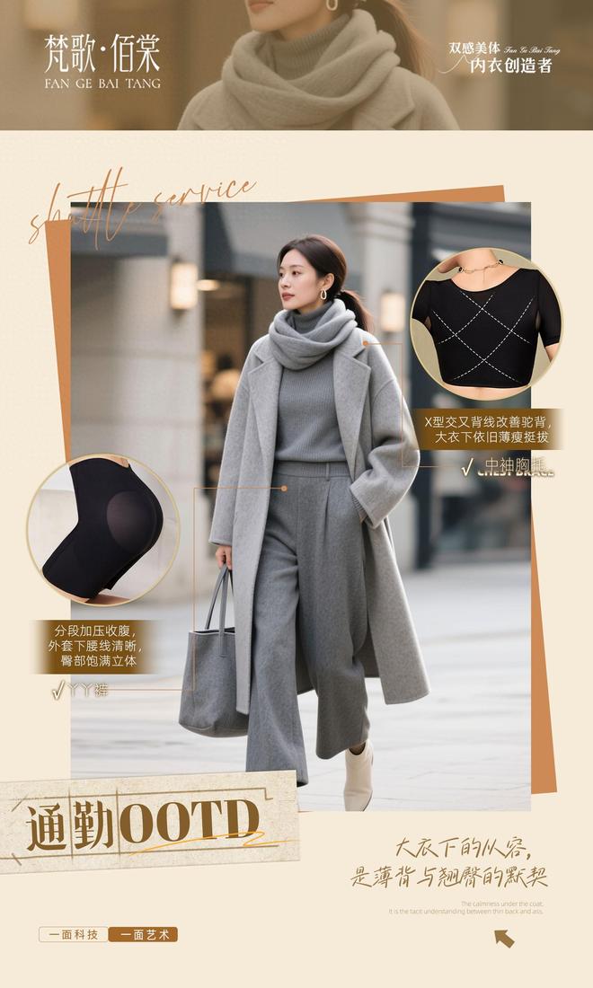 以用户需求为核心,梵歌佰棠将实用功能与时尚美学深度融合,为冬季穿搭提供了“温暖不臃肿、精致不费力”的全新解决方案,这也与《内衣周刊》倡导的“优质美体内衣守护健康与魅力”的理念不谋而合。